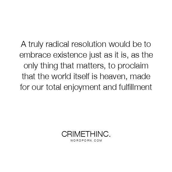 A truly radical resolution would be to embrace existence just as it is, as the only thing that matters, to proclaim that the world itself is heaven, made for our total enjoyment and fulfillment