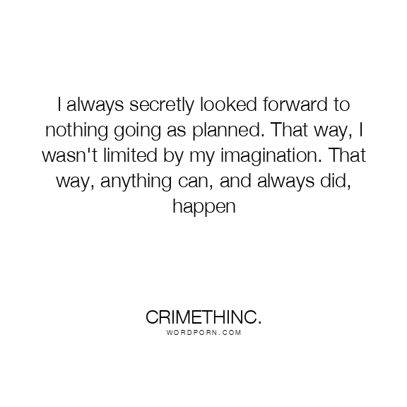 I always secretly looked forward to nothing going as planned. That way, I wasn't limited by my imagination. That way, anything can, and always did, happen