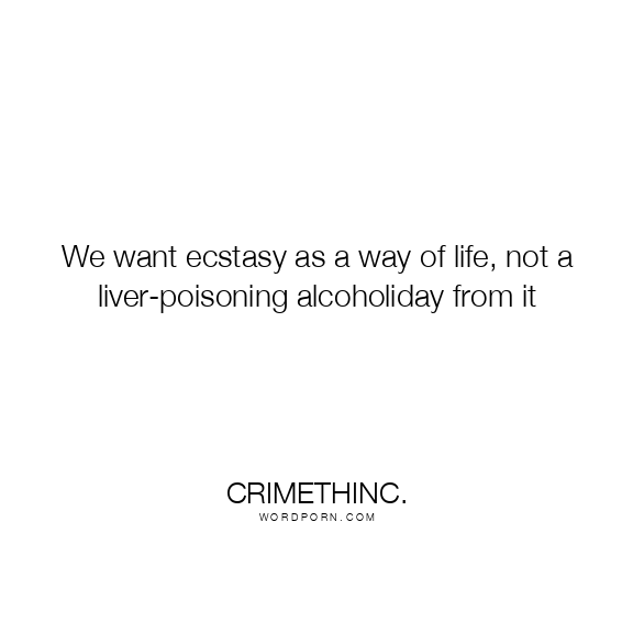 We want ecstasy as a way of life, not a liver-poisoning alcoholiday from it