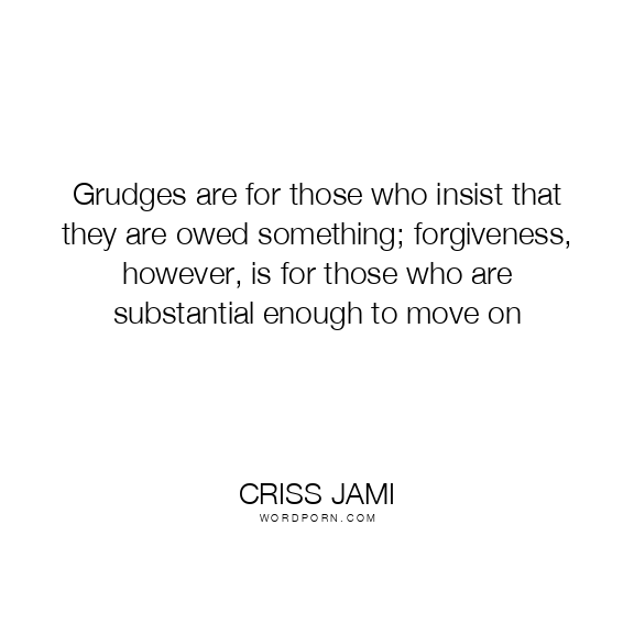 Grudges are for those who insist that they are owed something; forgiveness, however, is for those who are substantial enough to move on