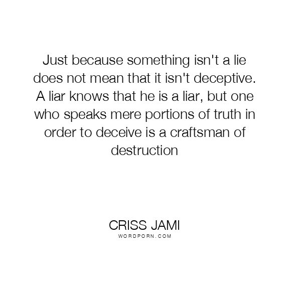 Just because something isn't a lie does not mean that it isn't deceptive. A liar knows that he is a liar, but one who speaks mere portions of truth in order to deceive is a craftsman of destruction