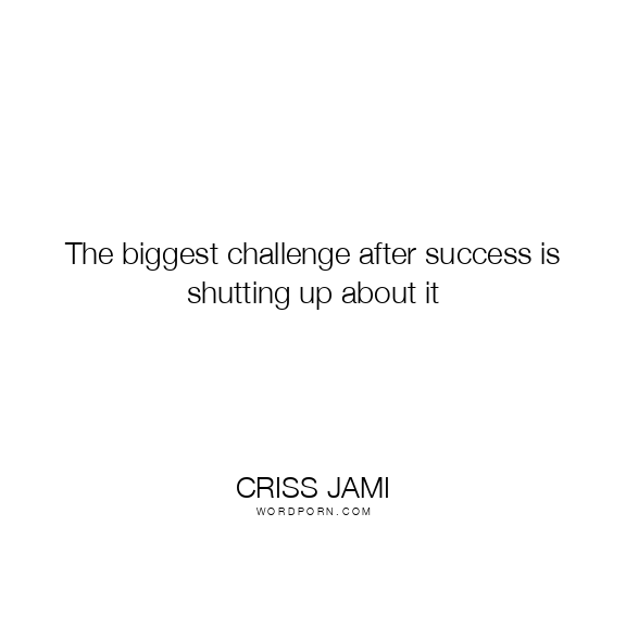 The biggest challenge after success is shutting up about it