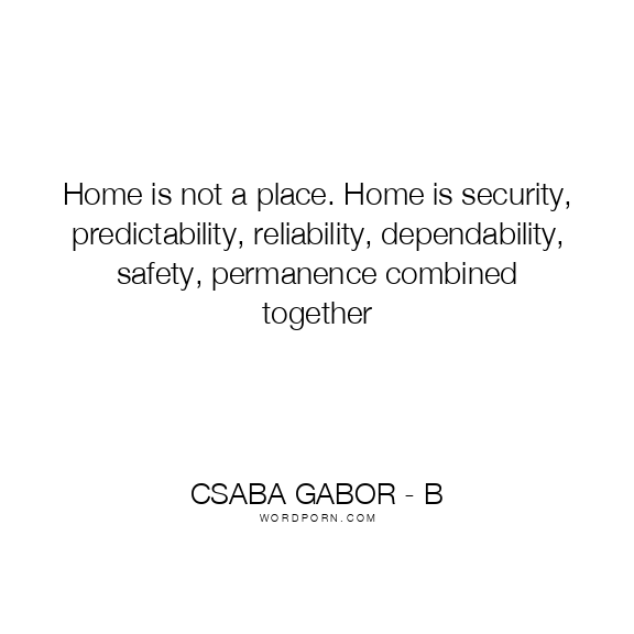 Home is not a place. Home is security, predictability, reliability, dependability, safety, permanence combined together