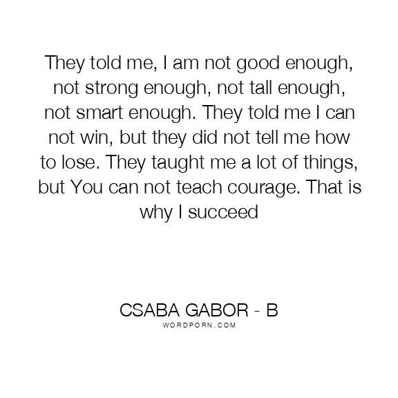 They told me, I am not good enough, not strong enough, not tall enough, not smart enough. They told me I can not win, but they did not tell me how to lose. They taught me a lot of things, but You can not teach courage. That is why I succeed