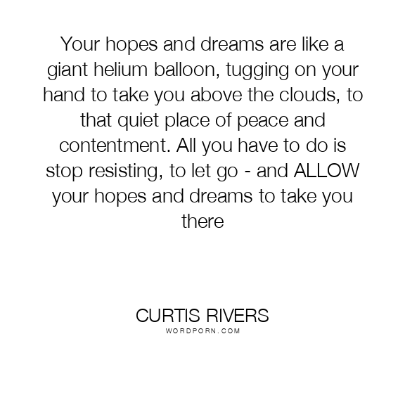 Your hopes and dreams are like a giant helium balloon, tugging on your hand to take you above the clouds, to that quiet place of peace and contentment. All you have to do is stop resisting, to let go - and ALLOW your hopes and dreams to take you there
