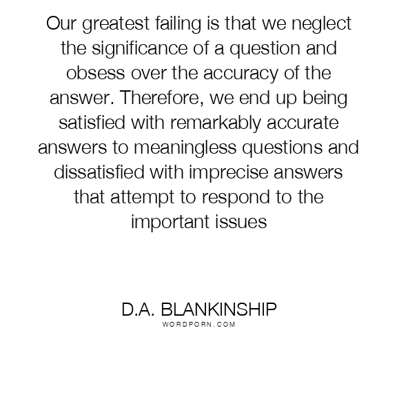 Our greatest failing is that we neglect the significance of a question and obsess over the accuracy of the answer. Therefore, we end up being satisfied with remarkably accurate answers to meaningless questions and dissatisfied with imprecise answers that attempt to respond to the important issues