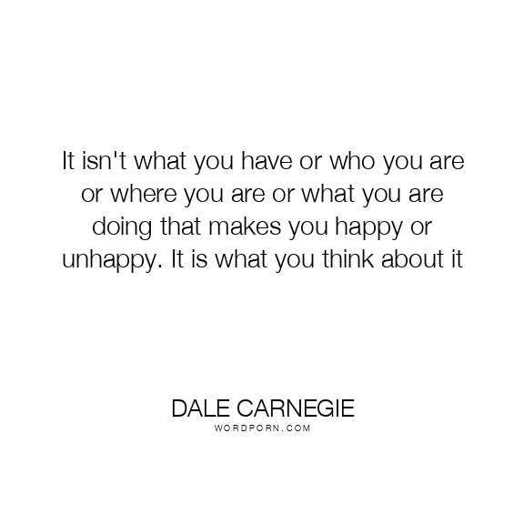 It isn't what you have or who you are or where you are or what you are doing that makes you happy or unhappy. It is what you think about it