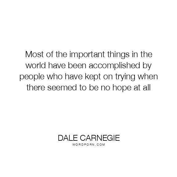 Most of the important things in the world have been accomplished by people who have kept on trying when there seemed to be no hope at all