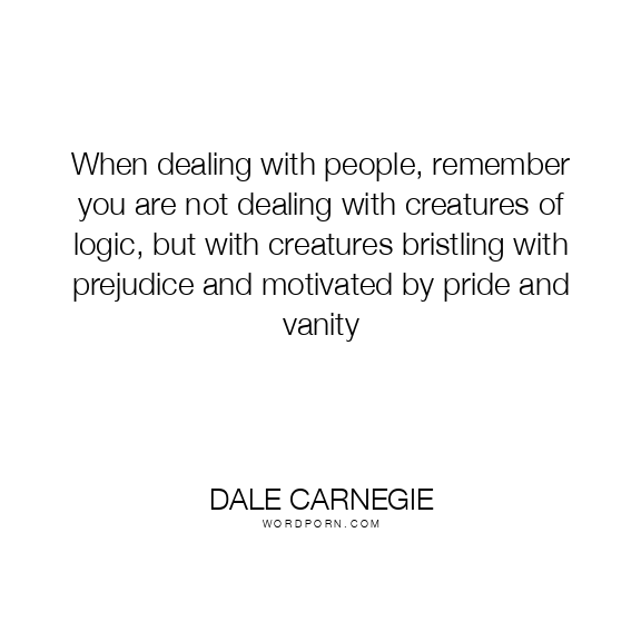 When dealing with people, remember you are not dealing with creatures of logic, but with creatures bristling with prejudice and motivated by pride and vanity