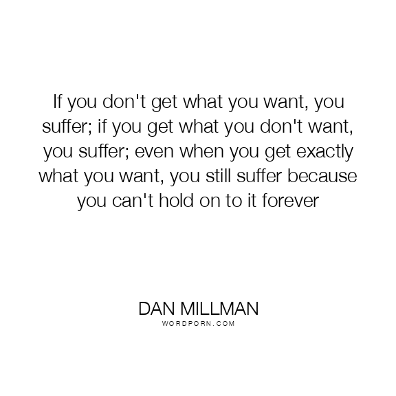 If you don't get what you want, you suffer; if you get what you don't want, you suffer; even when you get exactly what you want, you still suffer because you can't hold on to it forever