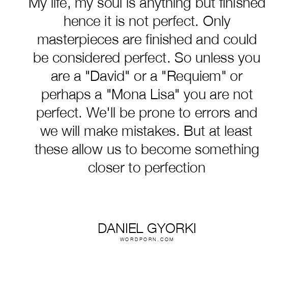 My life, my soul is anything but finished hence it is not perfect. Only masterpieces are finished and could be considered perfect. So unless you are a "David" or a "Requiem" or perhaps a "Mona Lisa" you and I are not perfect. We'll be prone to errors and we will make mistakes. But at least these allow us to become something closer to perfection