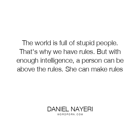 The world is full of stupid people. That's why we have rules. But with enough intelligence, a person can be above the rules. She can make rules