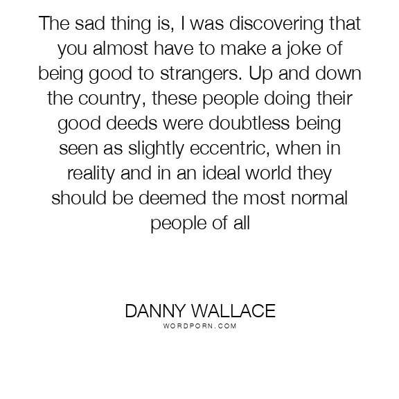 The sad thing is, I was discovering that you almost have to make a joke of being good to strangers. Up and down the country, these people doing their good deeds were doubtless being seen as slightly eccentric, when in reality and in an ideal world they should be deemed the most normal people of all