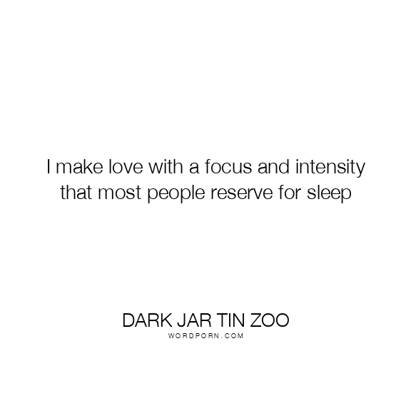 I make love with a focus and intensity that most people reserve for sleep