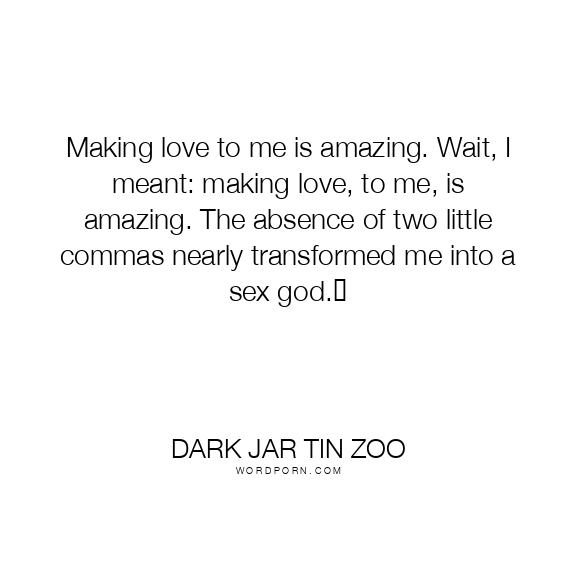 Making love to me is amazing. Wait, I meant: making love, to me, is amazing. The absence of two little commas nearly transformed me into a sex god.