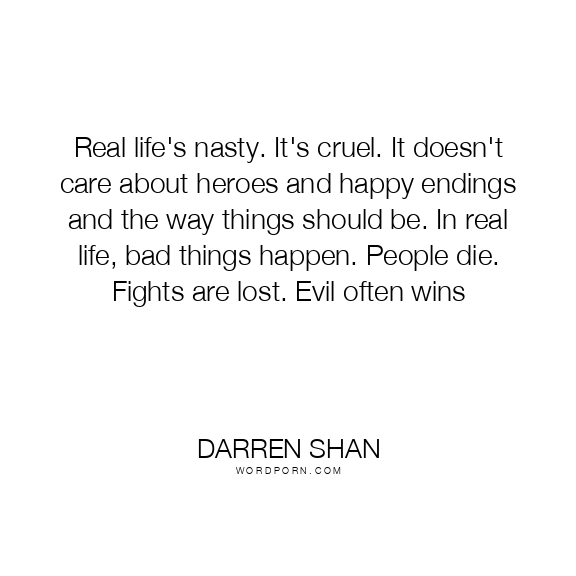 Real life's nasty. It's cruel. It doesn't care about heroes and happy endings and the way things should be. In real life, bad things happen. People die. Fights are lost. Evil often wins