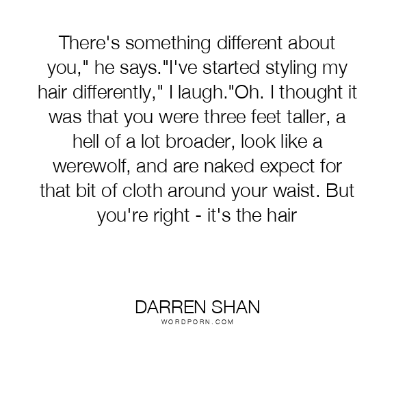 There's something different about you," he says."I've started styling my hair differently," I laugh."Oh. I thought it was that you were three feet taller, a hell of a lot broader, look like a werewolf, and are naked expect for that bit of cloth around your waist. But you're right - it's the hair