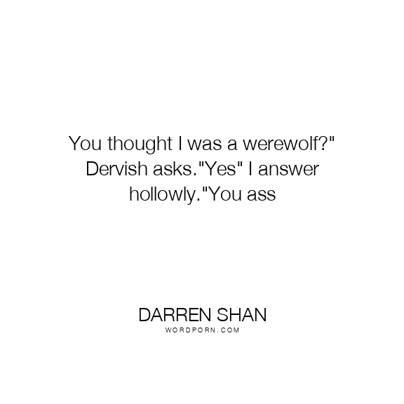 You thought I was a werewolf?" Dervish asks."Yes" I answer hollowly."You ass