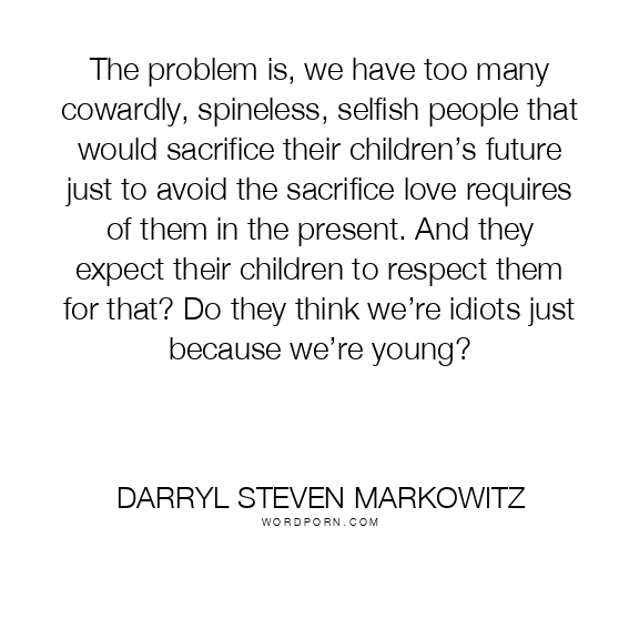 The problem is, we have too many cowardly, spineless, selfish people that would sacrifice their children’s future just to avoid the sacrifice love requires of them in the present. And they expect their children to respect them for that? Do they think we’re idiots just because we’re young?