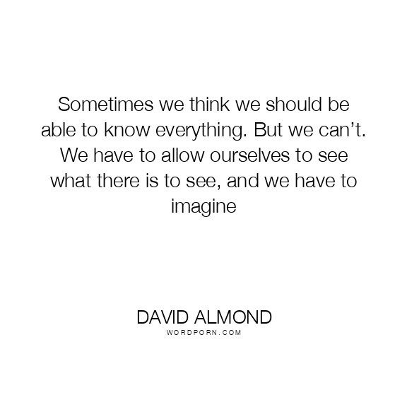 Sometimes we think we should be able to know everything. But we can’t. We have to allow ourselves to see what there is to see, and we have to imagine