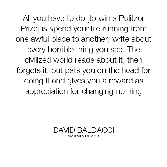 All you have to do [to win a Pulitzer Prize] is spend your life running from one awful place to another, write about every horrible thing you see. The civilized world reads about it, then forgets it, but pats you on the head for doing it and gives you a reward as appreciation for changing nothing