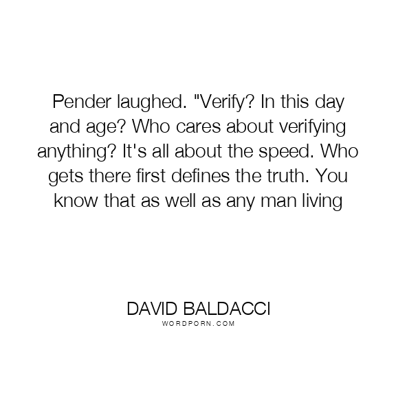Pender laughed. "Verify? In this day and age? Who cares about verifying anything? It's all about the speed. Who gets there first defines the truth. You know that as well as any man living