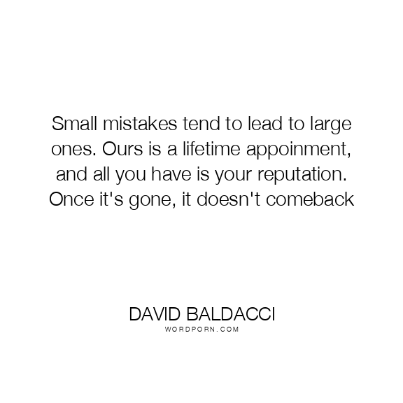 Small mistakes tend to lead to large ones. Ours is a lifetime appoinment, and all you have is your reputation. Once it's gone, it doesn't comeback