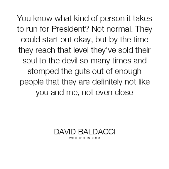 You know what kind of person it takes to run for President? Not normal. They could start out okay, but by the time they reach that level they've sold their soul to the devil so many times and stomped the guts out of enough people that they are definitely not like you and me, not even close