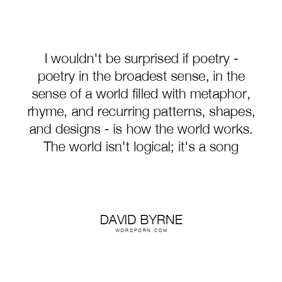I wouldn't be surprised if poetry - poetry in the broadest sense, in the sense of a world filled with metaphor, rhyme, and recurring patterns, shapes, and designs - is how the world works. The world isn't logical; it's a song