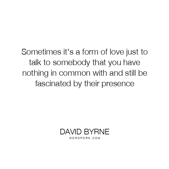 Sometimes it's a form of love just to talk to somebody that you have nothing in common with and still be fascinated by their presence