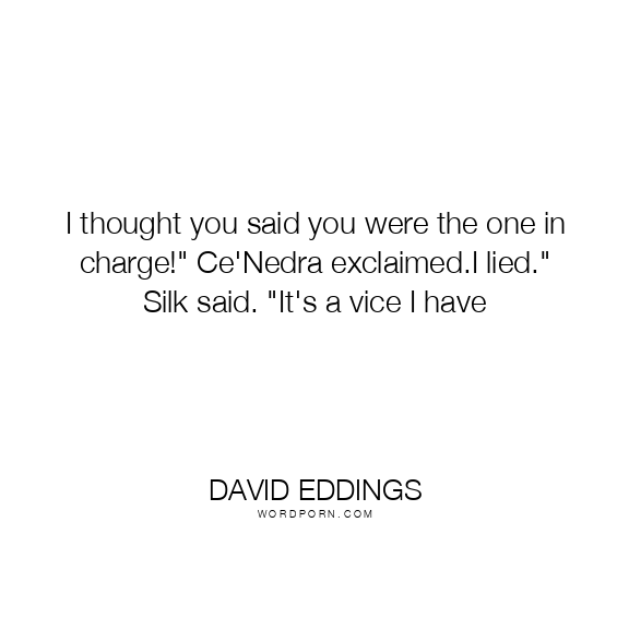 I thought you said you were the one in charge!" Ce'Nedra exclaimed.I lied." Silk said. "It's a vice I have