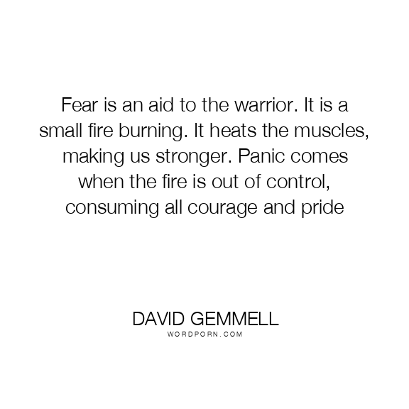 Fear is an aid to the warrior. It is a small fire burning. It heats the muscles, making us stronger. Panic comes when the fire is out of control, consuming all courage and pride
