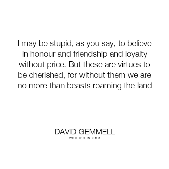 I may be stupid, as you say, to believe in honour and friendship and loyalty without price. But these are virtues to be cherished, for without them we are no more than beasts roaming the land