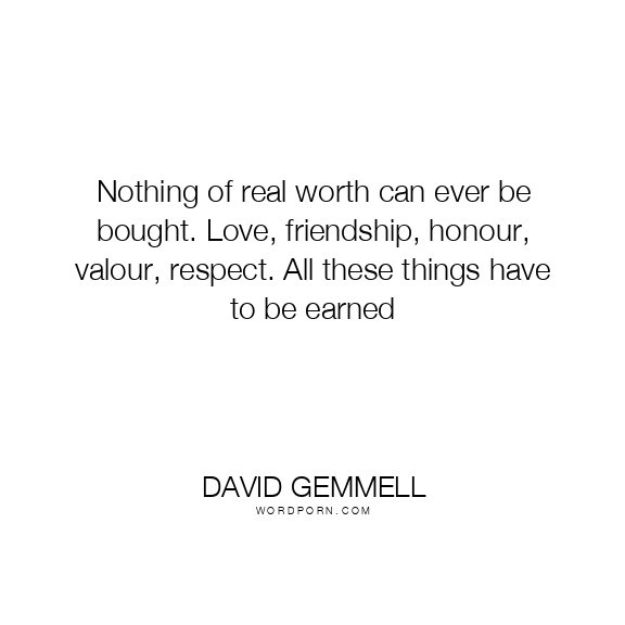 Nothing of real worth can ever be bought. Love, friendship, honour, valour, respect. All these things have to be earned