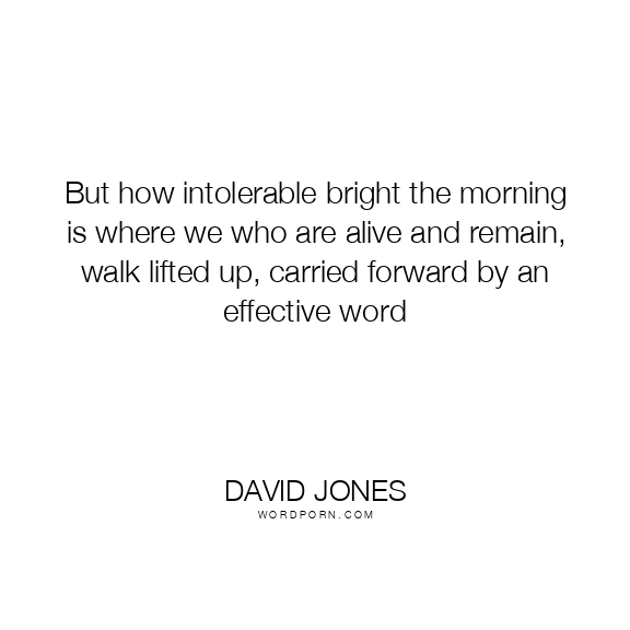 But how intolerable bright the morning is where we who are alive and remain, walk lifted up, carried forward by an effective word