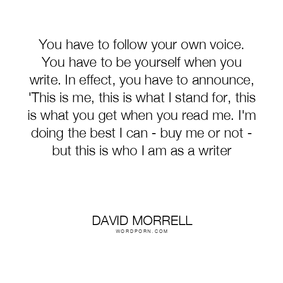 You have to follow your own voice. You have to be yourself when you write. In effect, you have to announce, 'This is me, this is what I stand for, this is what you get when you read me. I'm doing the best I can - buy me or not - but this is who I am as a writer