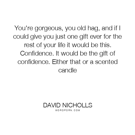You're gorgeous, you old hag, and if I could give you just one gift ever for the rest of your life it would be this. Confidence. It would be the gift of confidence. Either that or a scented candle