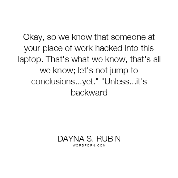 Okay, so we know that someone at your place of work hacked into this laptop. That's what we know, that's all we know; let's not jump to conclusions...yet." "Unless...it's backward
