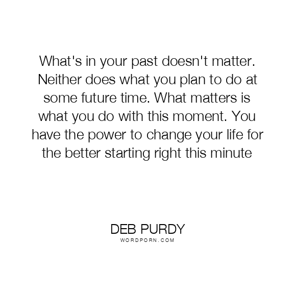 What's in your past doesn't matter. Neither does what you plan to do at some future time. What matters is what you do with this moment. You have the power to change your life for the better starting right this minute