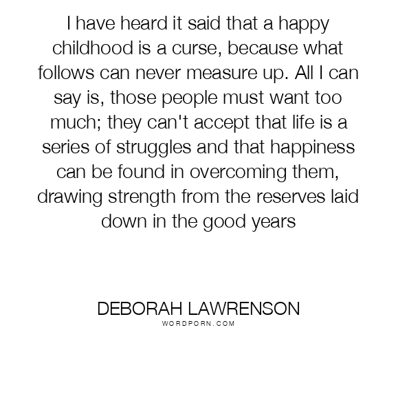 I have heard it said that a happy childhood is a curse, because what follows can never measure up. All I can say is, those people must want too much; they can't accept that life is a series of struggles and that happiness can be found in overcoming them, drawing strength from the reserves laid down in the good years
