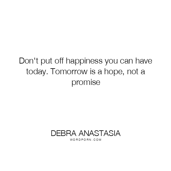 Don't put off happiness you can have today. Tomorrow is a hope, not a promise