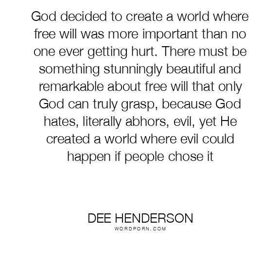 God decided to create a world where free will was more important than no one ever getting hurt. There must be something stunningly beautiful and remarkable about free will that only God can truly grasp, because God hates, literally abhors, evil, yet He created a world where evil could happen if people chose it