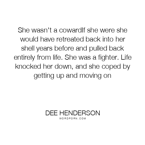 She wasn't a cowardIf she were she would have retreated back into her shell years before and pulled back entirely from life. She was a fighter. Life knocked her down, and she coped by getting up and moving on