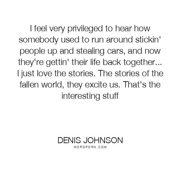 I feel very privileged to hear how somebody used to run around stickin' people up and stealing cars, and now they're gettin' their life back together... I just love the stories. The stories of the fallen world, they excite us. That's the interesting stuff