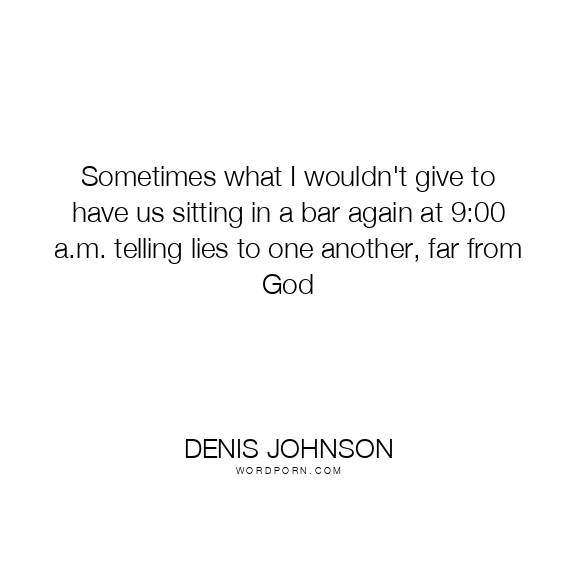 Sometimes what I wouldn't give to have us sitting in a bar again at 9:00 a.m. telling lies to one another, far from God