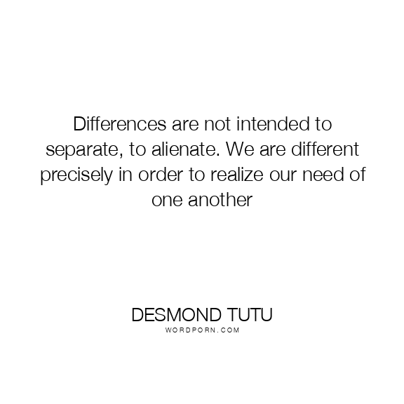 Differences are not intended to separate, to alienate. We are different precisely in order to realize our need of one another