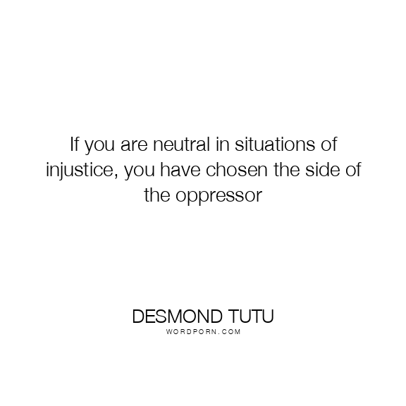 If you are neutral in situations of injustice, you have chosen the side of the oppressor
