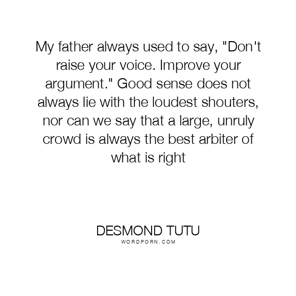 My father always used to say, "Don't raise your voice. Improve your argument." Good sense does not always lie with the loudest shouters, nor can we say that a large, unruly crowd is always the best arbiter of what is right