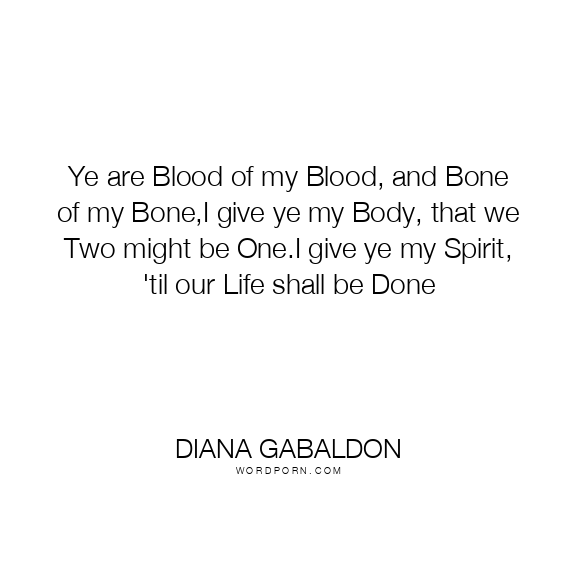 Ye are Blood of my Blood, and Bone of my Bone,I give ye my Body, that we Two might be One.I give ye my Spirit, 'til our Life shall be Done