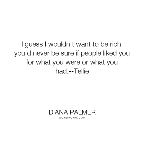 I guess I wouldn't want to be rich. you'd never be sure if people liked you for what you were or what you had.--Tellie